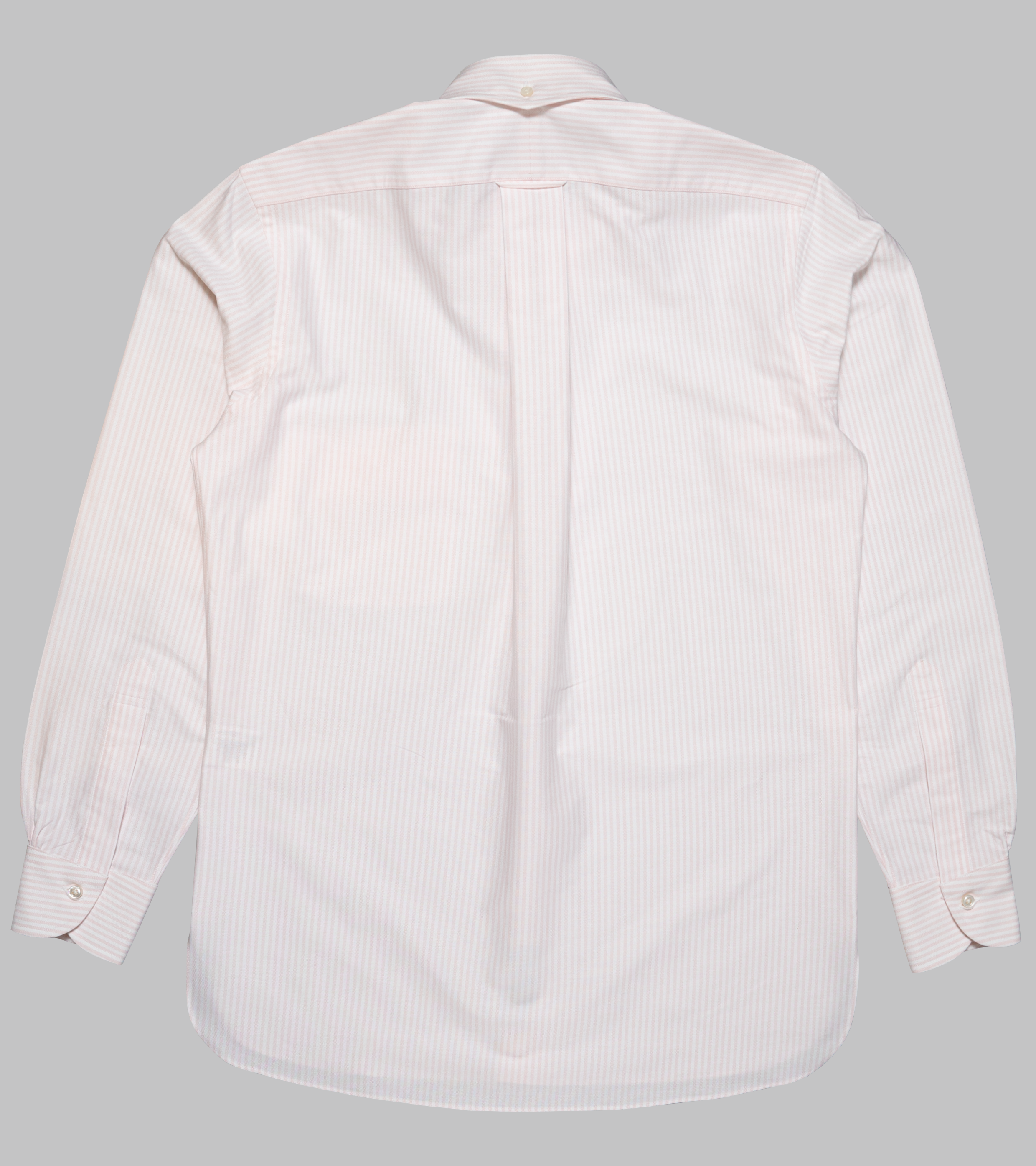 My “Perfect OCBD” is how that workhorse of a shirt should be, with a high rolling collar and an extra button at the back of the collar to keep everything in place. A wider box pleat and locker loop for a little ease and grace through the back, long tails with gussets to stay firmly seated in the trouser. Shirred tucks, a throwback to the beautiful “Arrow” shirts of the 1930’s, on a curved, single button cuff, that thanks to its design follows the shape of the wrist. Mother of pearl buttons, finish it as it should be.